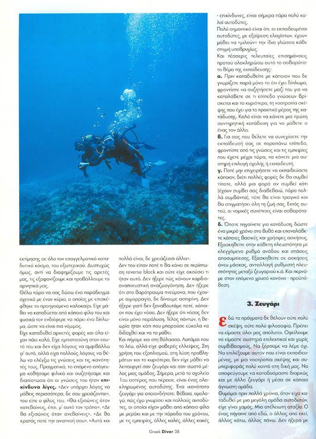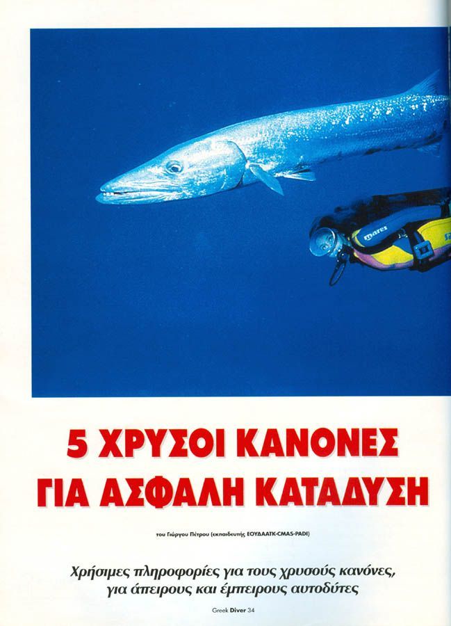 Ξεχάστε τον φίλο και το mentoring. Όπως δεν είναι ασφαλές να παίρνετε ένα φάρμακο που σου προτείνει ένας φίλος έτσι και η εκπαίδευση στην κατάδυση πρέπει να γίνεται από πιστοποιημένο εκπαιδευτή όπου η περίπτωση ελλείψεων στην ασφάλεια και μη ολοκληρωμένης θεωρητικής και πρακτικής εκπαίδευσης είναι ελάχιστη. Δεν πειραματιζόμαστε. Οφείλουμε να καταδυόμαστε συχνά για να αποκτήσουμε εμπειρία. - Τήρηση μέτρων ασφαλείας και ορίων που έχεις διδαχθεί