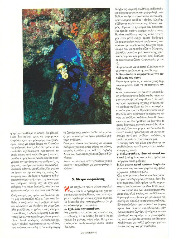 Η κατάδυση είναι μια πολύ ασφαλής δραστηριότητα δεδομένου ότι έχεις την δυνατότητα συμμετοχής στον έλεγχο της ασφάλειάς σου σε μεγάλο βαθμό.