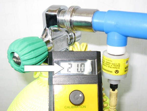 Ελέγχουμε το τι μίγμα εμπεριέχει η φιάλη μας. Είναι σημαντικό εφόσον είμαστε πιστοποιημένοι μόνον για αέρα και όχι για Enriched Air Nitrox να σιγουρευτούμε ότι η φιάλη μας είναι γεμάτη με αέρα. Η ένδειξη του αναλυτή μας θα πρέπει νε είναι 20.9 - 21%, με σωστή διαδικασία ροής αερίου και με σωστά καλιμπραρισμένο αναλυτή. Εάν είμαστε πιστοποιημένοι για Nitrox να βεβαιωθούμε για το % του μίγματος.