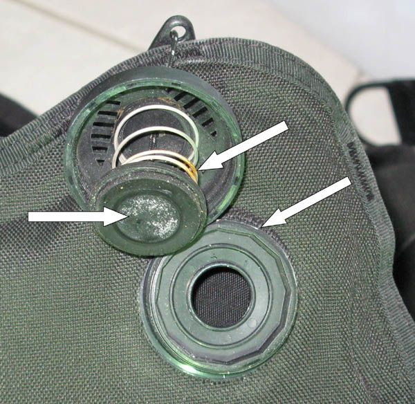 Ελέγχουμε τις βαλβίδες του Ρυθμιστή Πλευστότητάς μας. Ελέγχουμε το σημείο με την ένωση με τον σάκο. Ελέγχουμε το λαστιχένιο δίσκο να μην είναι φθαρμένο, ελέγχουμε το ελατήριο (πχ για σκουριά) και σαφέστατα για την ύπαρξη άμμου. Οφείλουμε να βεβαιωθούμε ότι αυτές λειτουργούν άριστα.