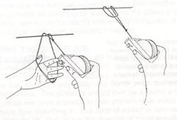 Προσέξτε μία από τις τεχνικές πρόσδεσης του εφεδρικού μίτου στον κύριο. Η κίνησή μας είτε αναπτύσσοντας τον μίτο είτε ακολουθώντας τον μίτο πρέπει να είναι προσεκτική έτσι ώστε να μην λύσει, ξεσύρει ή δίνοντας τάση κοπεί ο ίδιος ή κόψει ή μπλέξει τον κεντρικό μίτο.