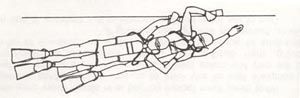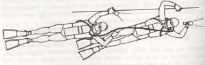 - Ο Σπηλαιοδύτης (θύμα) έχει πάρει το χταπόδι του ζευγαριού του και κινείται μη εμποδίζοντας τις κινήσεις (πεδιλιές) αυτού.