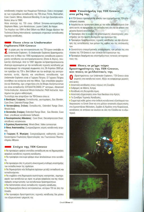 Οι Hellas Underwater Explorers - Γιώργος Πέτρου σαν αντιπρόσωποι της TDISDI πραγματοποίησαν πάρα πολλά δωρεάν σεμινάρια - παρουσιάσεις σε όλη την Ελλάδα με σκοπό να αναπτυχθεί η τεχνική κατάδυση κατά κύριο λόγο.