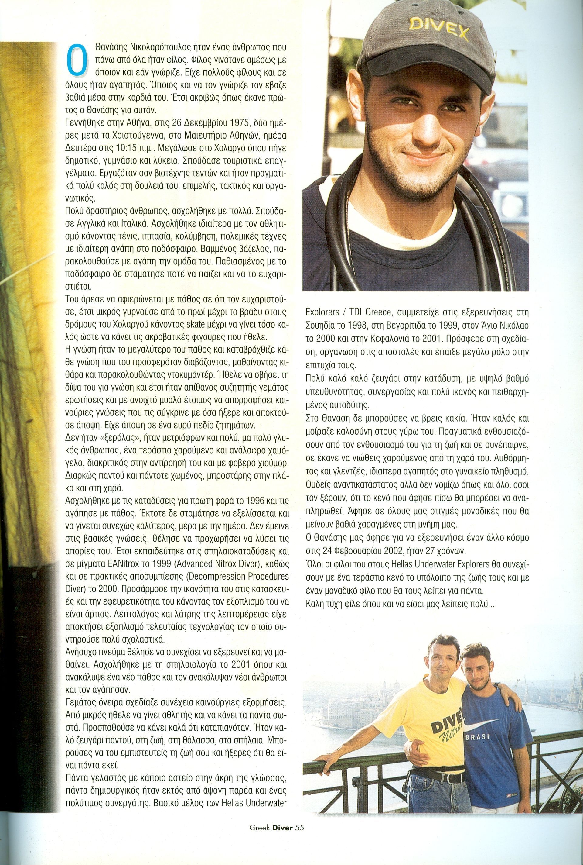 - Πήρε μέρος σε όλα τα σεμινάρια μας, σε καταδύσεις σε λίμνες και ότι από τα πάρα πολλά που κάναμε.
