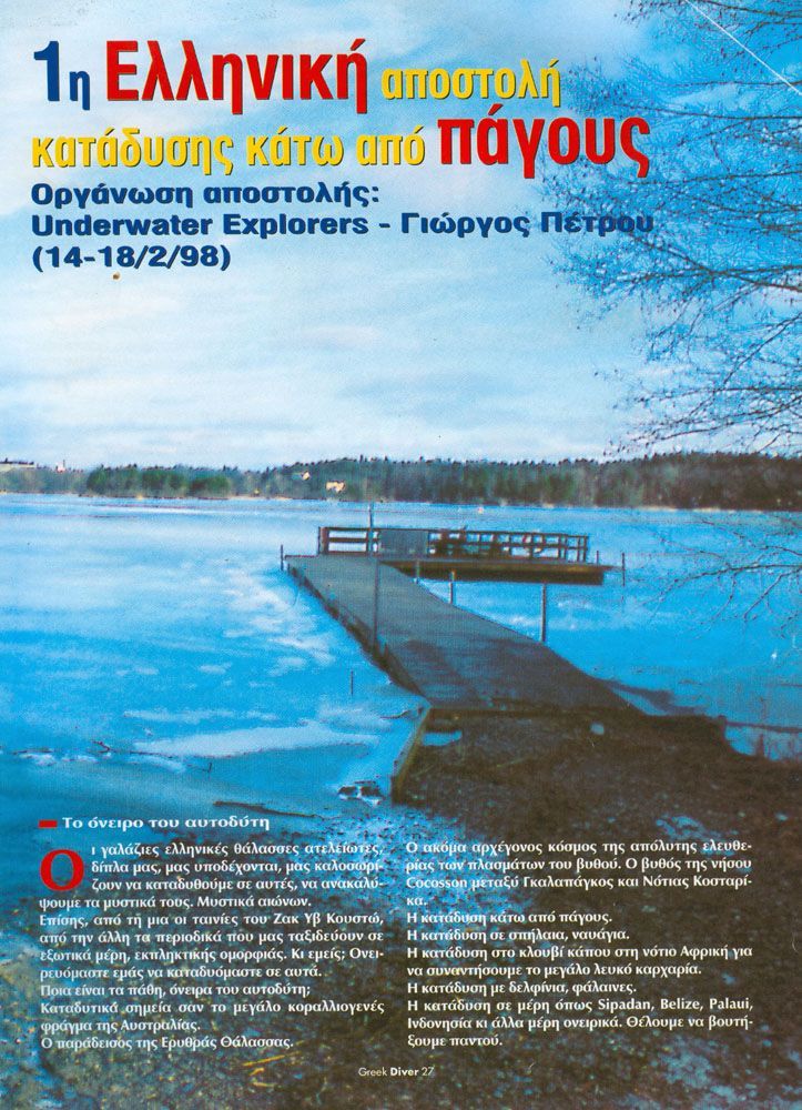 - Πήρε μέρος στην πρώτη αποστολή και σχολείο Ice diving στην Σουηδία το 1998. 'Έκτοτε πήρε μέρος σε όλες τις δραστηριότητες των HUE και υποστήριξε αυτές σε όλα τα επίπεδα όπως οργανωτικό, εκτελεστικό.