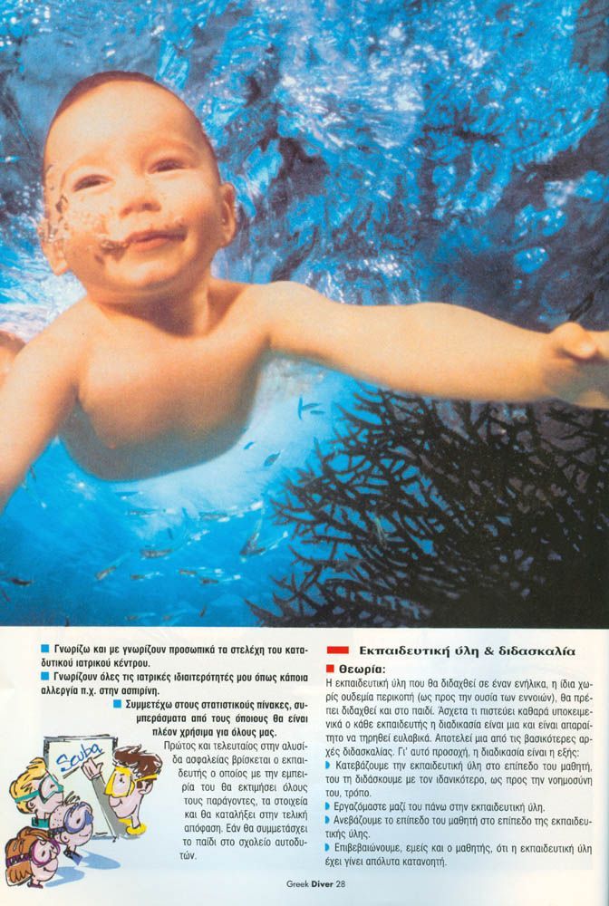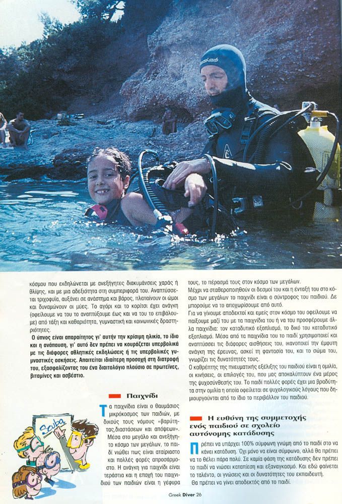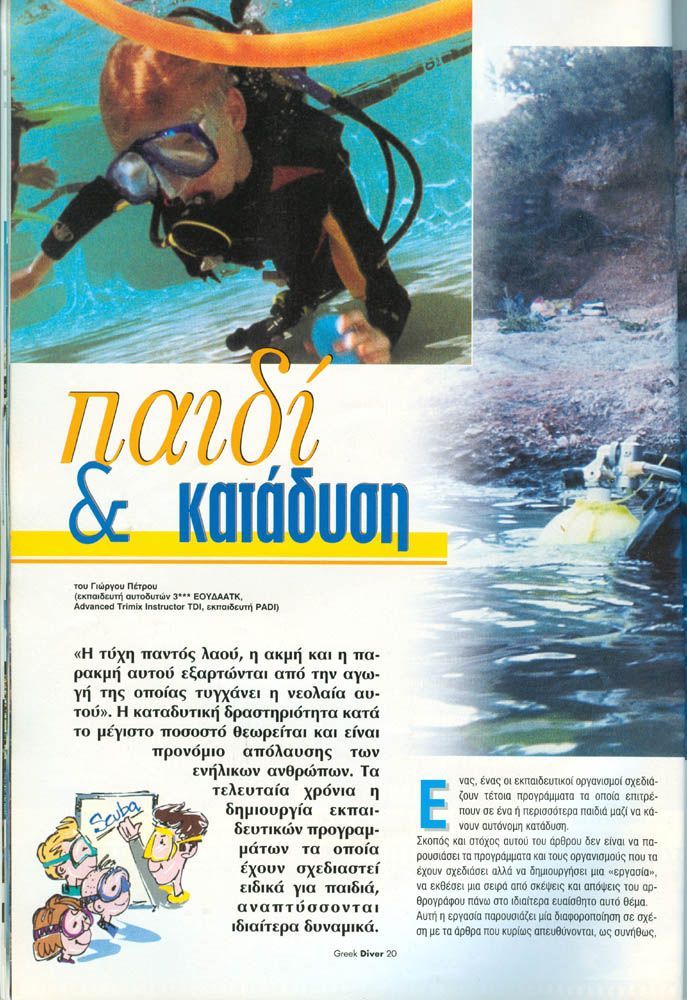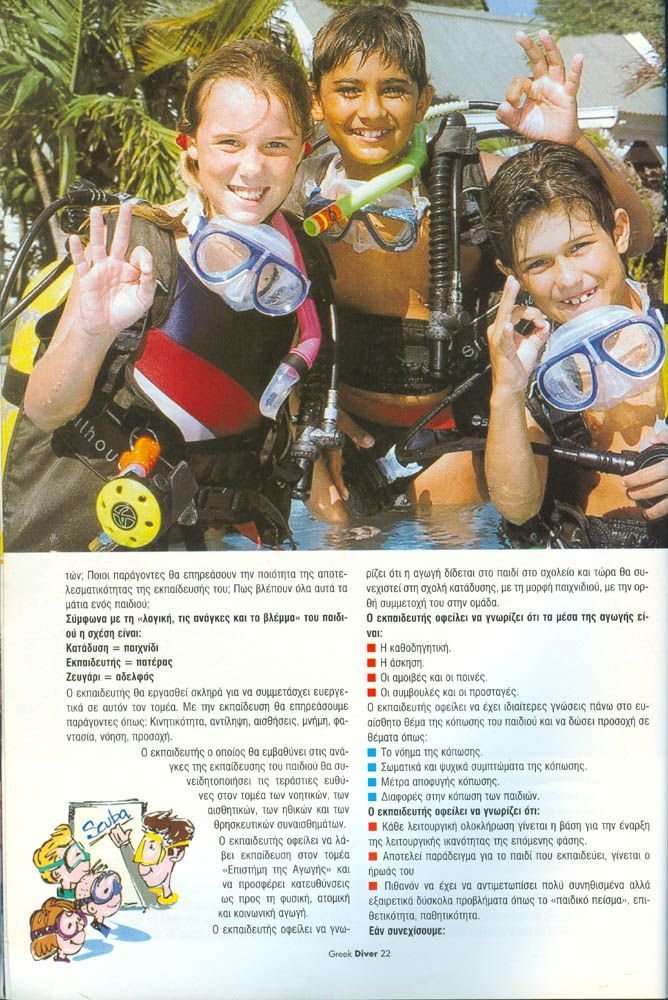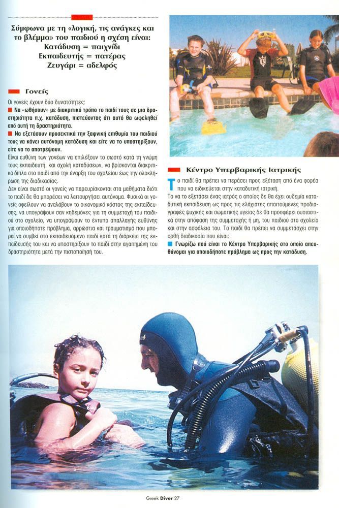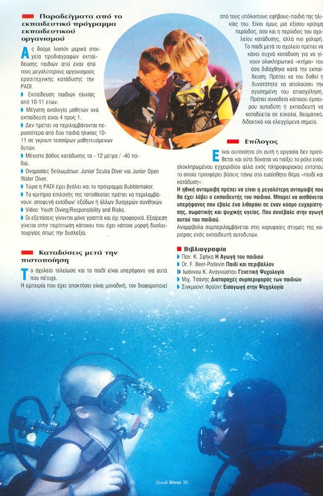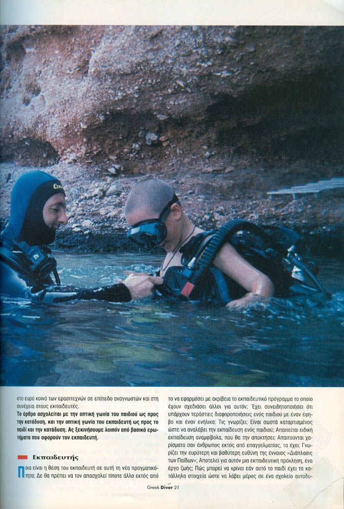 Το άρθρο ασχολείται με την οπτική γωνία του παιδιού ως προς την κατάδυση, και την οπτική γωνία του εκπαιδευτή ως προς το παιδί και κατάδυση.