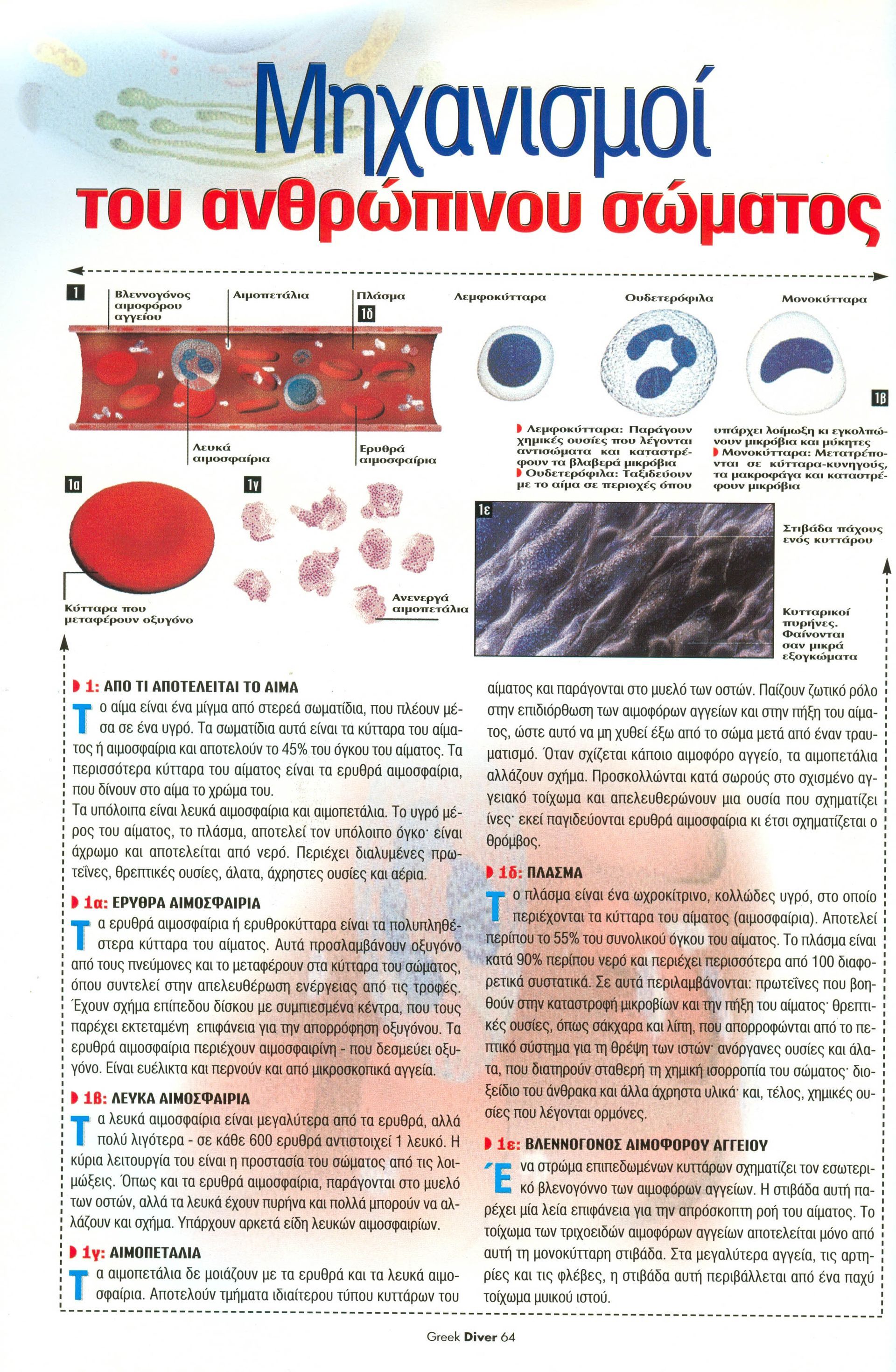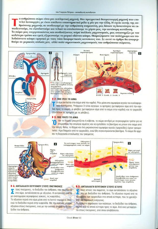 Στις καταδύσεις μιλάμε για ιστούς, απαζωτώσεις, διαλυτότητα, διάχυση, αλγόριθμους, νόσο των δυτών , νάρκωση αζώτου , δηλητηριάσεις αερίων και πολλά άλλα....αλλά πολλές φορές δεν ασχολούμαστε με πολύ πιο απλά και καθοριστικά πράγματα. Βασικούς μηχανισμούς του ανθρώπινου οργανισμού όπως πχ τα αγγεία, το αίμα, ανταλαγή αερίων / οξυγόνου στον πνεύμονα και πολλά άλλα. Το άρθρο αυτό μας δίνει μια απλή και απτή εικόνα μερικών από αυτά.