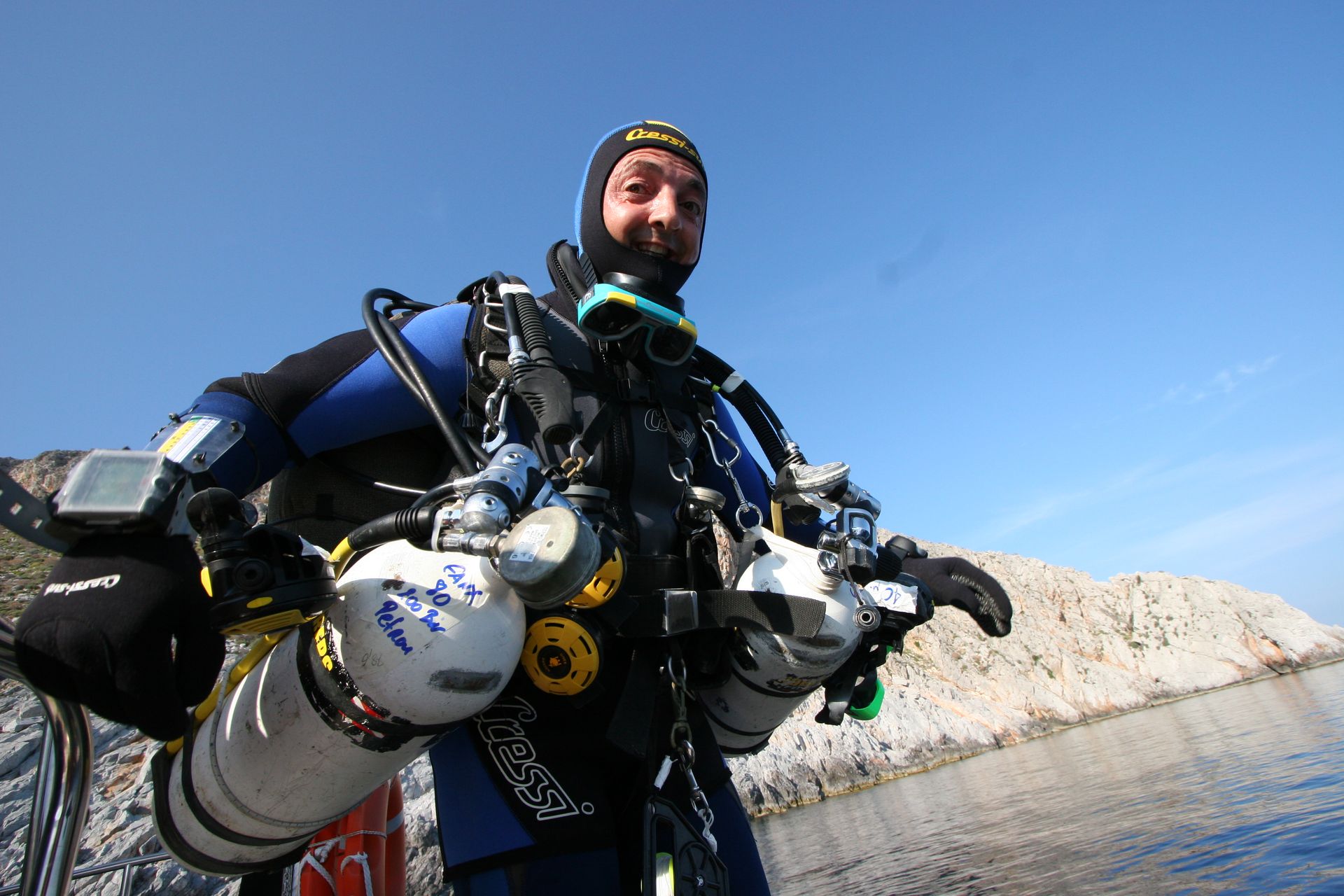 Hellas Underwater Explorers / George Petrou organized and held an Advanced Trimix Diver school in the summer of 2006 with certification from the TDI organization. Trainees were Nasos Zervopoulos, Kotsifas Ioannis, Agapakis L. The dives took place in the wonderful waters of Hydra. Maximum school depth was 100 meters. The last certification dive had a wonderful surprise in store for us as we reached its deepest point and met 4 large gray rays which calmly swam away from us towards the deep blue. The participants had an excellent performance.
