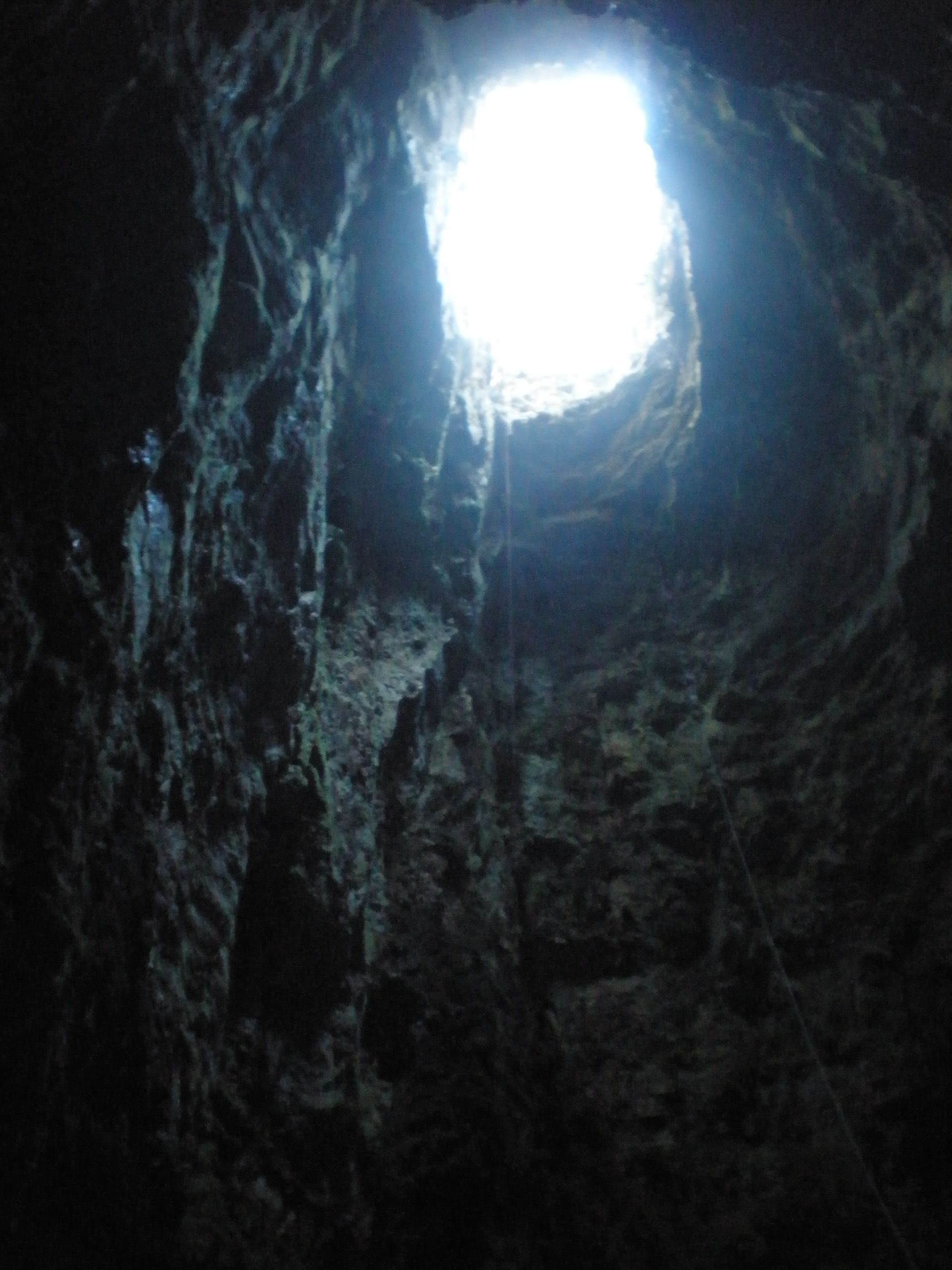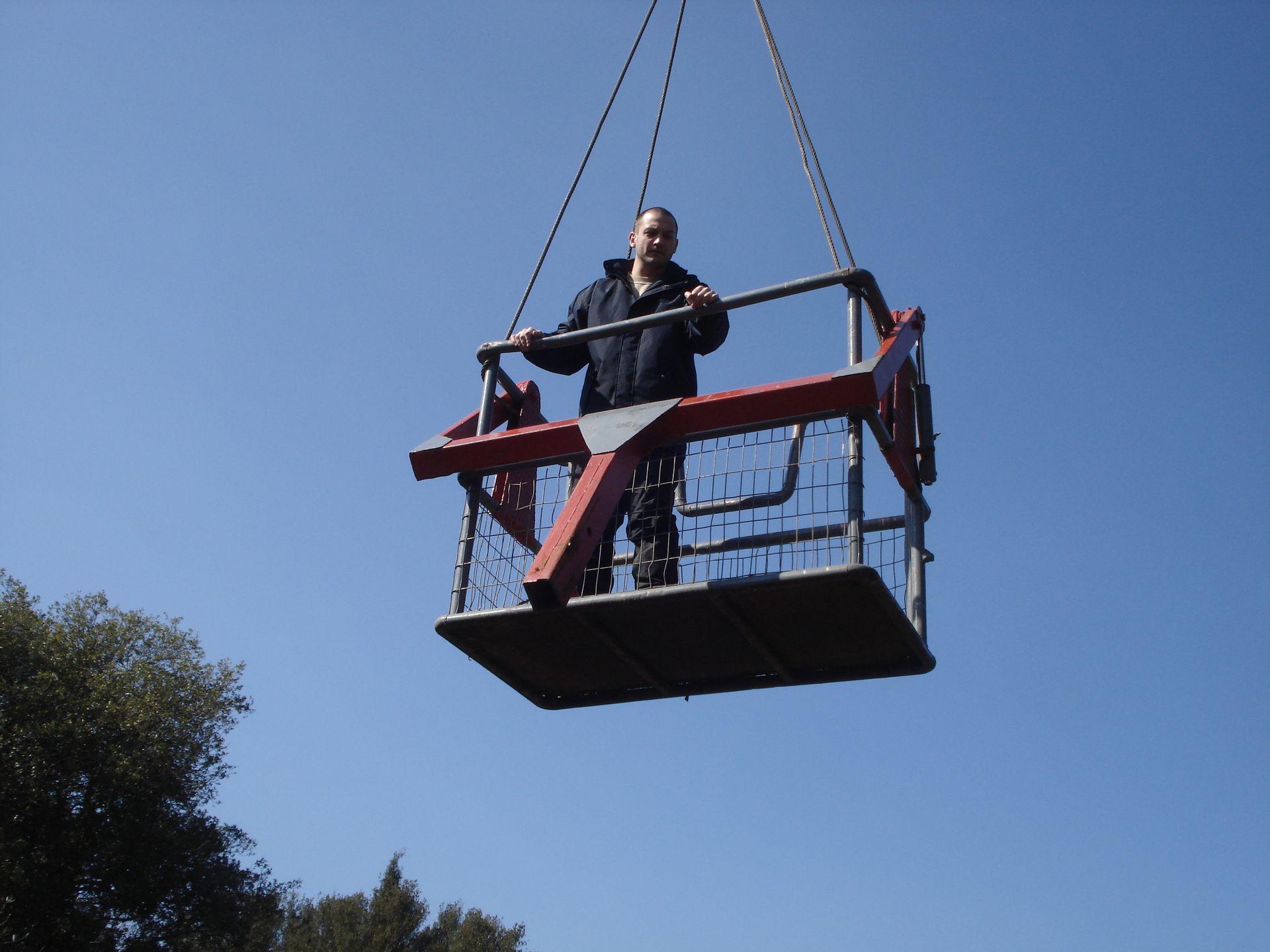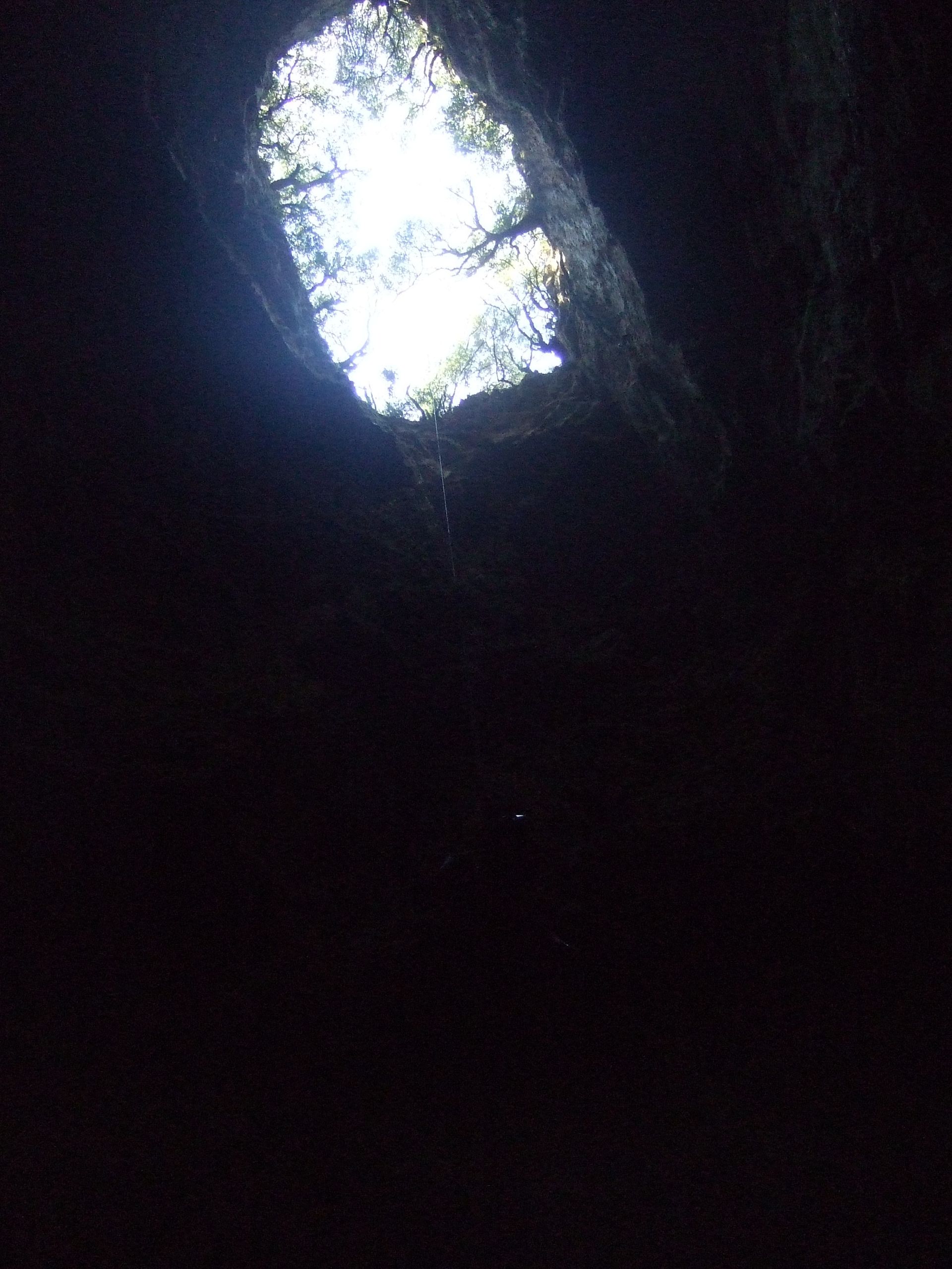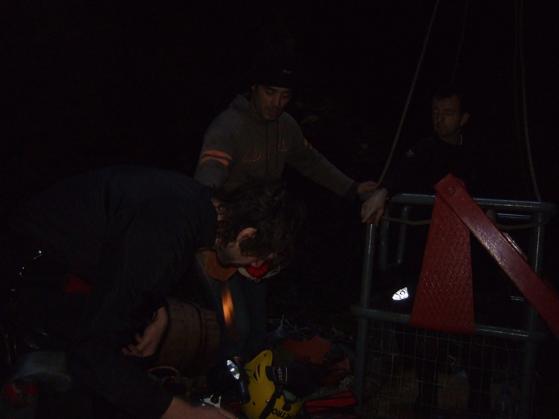 The roles had been clarified and Elias and Tasos would be responsible for supporting the two cavers who would do the exploration. That is, all the hard, thankless work, but you can't imagine how important it was. There was no way, as it turned out, that we could have done it without them as they demonstrated responsibility, professionalism, endurance and patience. For the descent to the bottom of the abyss, we enlisted a crane that lowered us with its basket to the top of a hill that was clearly the material of the roof - ground before the precipitation was made. To get down, we had to cut branches with dense foliage with a saw. Then, with ropes and the crane basket, we lowered our equipment. Any mistake could have been disastrous to fatal.