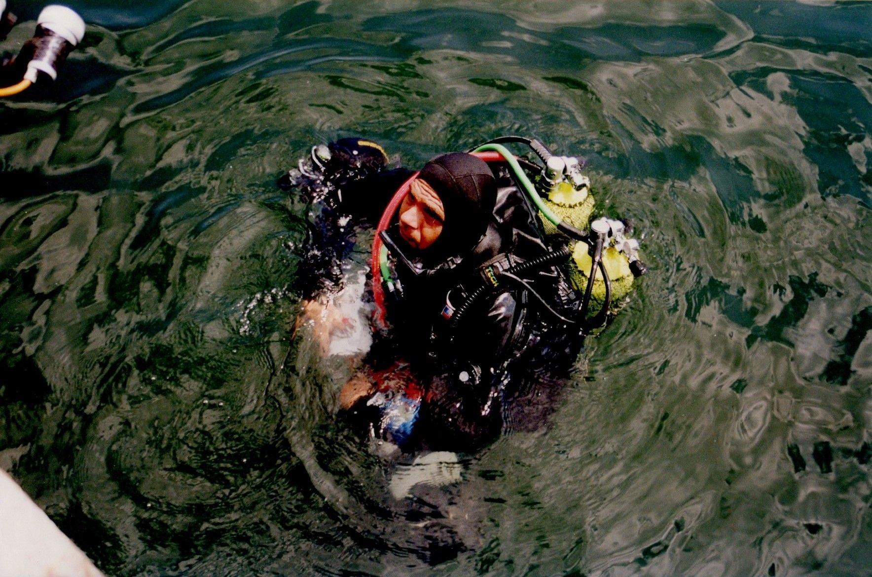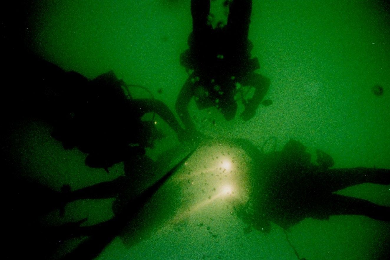 Our planned stay time has expired, and we return to the decompression bar for the ascent to the surface light. A long decompression time at depths of 12 to 3 meters that we are required to do before we emerge prolongs the anxiety of those waiting for us on the surface.