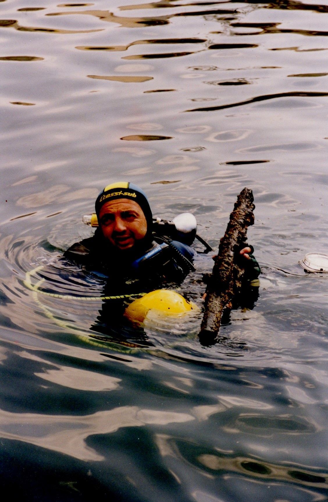 The divers emerge and while everyone, outside the exploration team, believes that it will be difficult to find anything, a weapon and bullets from those thrown by the conquerors are triumphantly retrieved from a cliff on the sides of the lagoon, confirming what the elders said. If I remember correctly, Michalis Tzenevrakis and Yiannis Mikelis began the dance of discoveries. In the following days, after a series of many strenuous dives, other weapons reach the surface. And not only weapons. A German military motorcycle, bayonets and other bullets raise the interest.