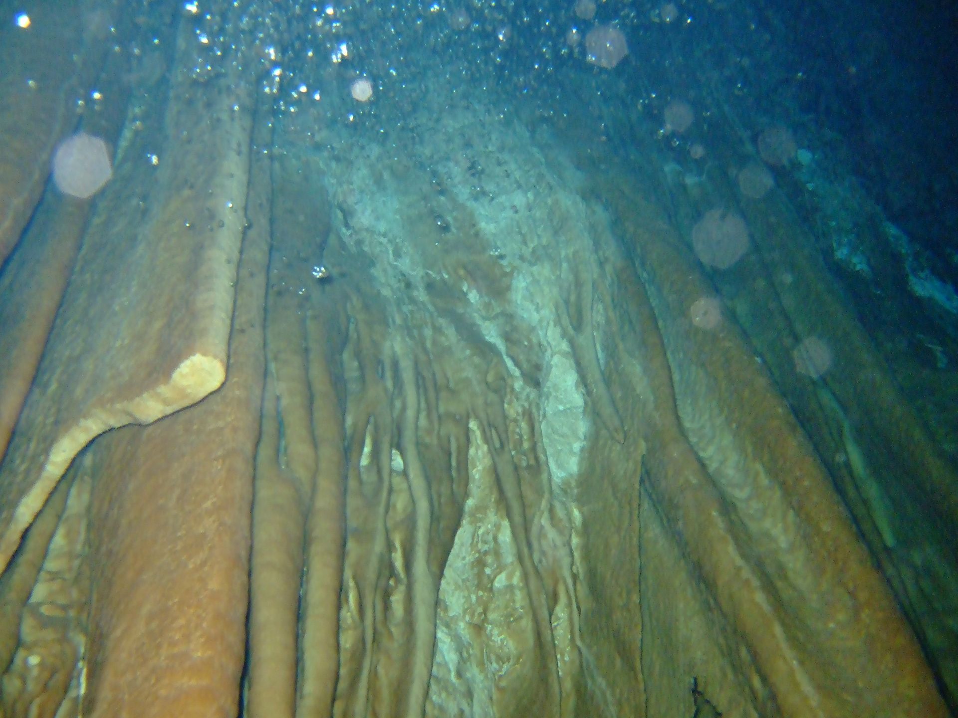 Η ομάδα μας απόλαυσε για μια ακόμη φορά τις καταδύσεις που πραγματοποιήσαμε. Το μεγάλο μακρύ σπήλαιο στην αριστερή πλευρά της λίμνης μας πρόσφερε απλόχερα απίστευτο θέαμα από σταλαγμίτες σταλακτίτες, κουρτίνες από σταλακτιτικό υλικό με υπέροχους χρωματισμούς να ξεπροβάλουν σε κάθε πεδιλισμό μας μέσα από το σκοτάδι. Τα φώτα μας αποκάλυπταν κάθε δευτερόλεπτο κάτι καινούργιο. Στο τέλος του σπηλαίου μια τεράστια φαρδιά κολώνα ενός σταλακτίτη και σταλαγμίτη που εχουν ενωθεί αποτελεί πάντα μια καταπληκτική εικόνα βουτηγμένη στο μαύρο, στο κόκκινο χρώμα τοιχωμάτων και ιζήματος, με ένα σαλοκλινές να δημιουργεί επίπεδα αντίθεσης όρασης λόγω διαφορετικής πυκνότητας νερού. Και όπως πάντα στην επιστροφή βγαίνοντας από το σκοτάδι που φωτίζουν οι στήλες των φακών μας, ένας τεράστιος τοίχος φωτός μας υποδέχεται στον χερσαίο κόσμο ξανά.