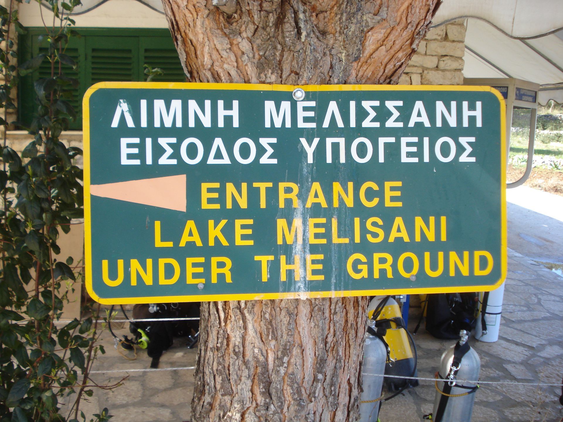 The Melissani Abyss is located about 2 kilometers northwest of the lush Sami. Very close to the sea. The natural entrance to the cave is vertical, measuring 40 x 50 m2, and was created by the collapse of a part of the roof, apparently due to an earthquake. For better access, an artificial entrance was built with steps and a long downward underground corridor. The lake is located about 20 meters below the surface of the ground and the depth of the lake's waters reaches about 40 meters. The land area is impressive with the high walls dominating and with stalactite material hanging from them.