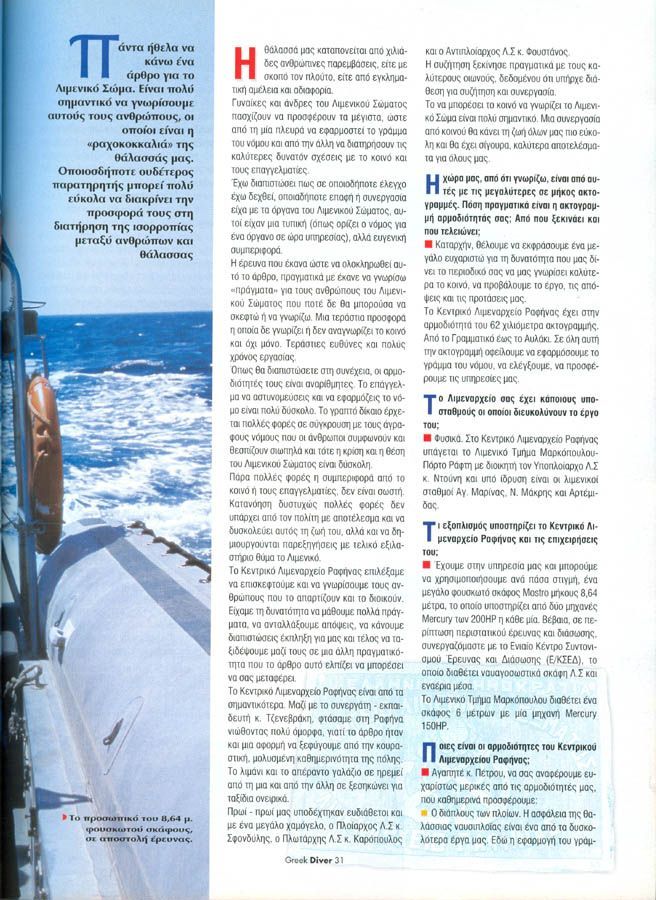Articles on state bodies are rare, but this is a tribute that should have been made because the Rafina Central Port Authority, like all other corresponding port authorities, offer a great deal to the Greek scuba diver.