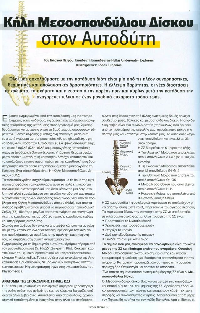 Κήλη Μεσοσπονδύλιου Δίσκου στον Αυτοδύτη.