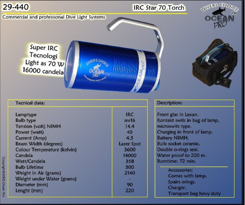 Μετά από πολύ μεγάλη διαδικασία επετεύχθη συμφωνία με την Δανέζικη κατασκευαστική εταιρεία Ocean Pro. Μια εταιρεία που κατασκευάζει κυρίως φακούς τεχνικής κατάδυσης, με canister, συμβατικούς φακούς με Led η HID, φίλτρα αεροσυμπιεστών, μείκτες αερίων και άλλα περιφερειακά.