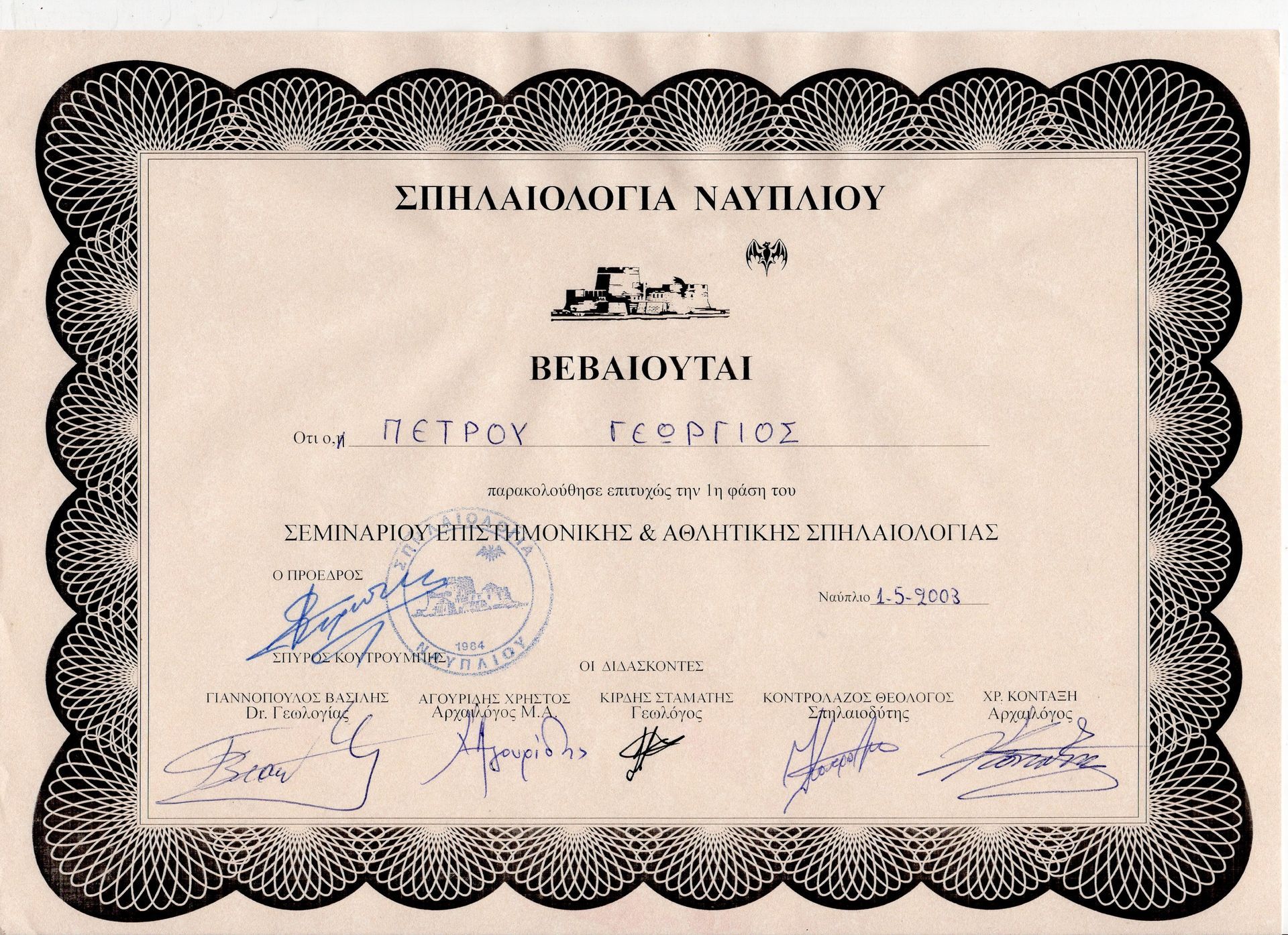 Σεμινάριο επιστημονικής και αθλητικής σπηλαιολογίας Μάϊος 2003